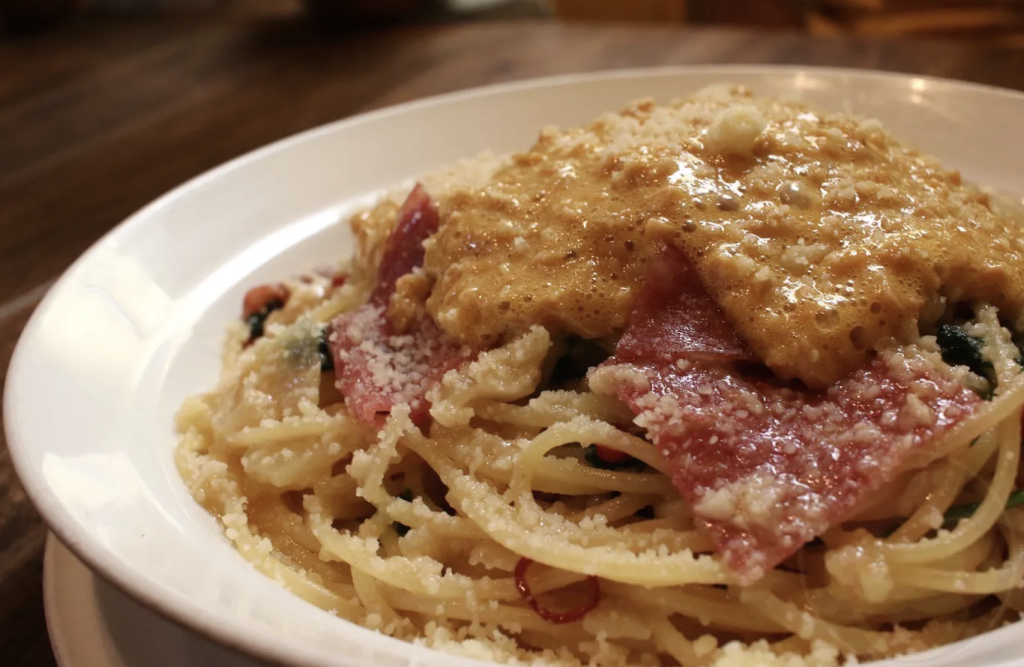 SFC生なら知らない人はいない、長年愛されている湘南台の絶品パスタ。中でも、ニンニクと鷹の爪のパスタは「にんたか」という略称で呼ばれ続け30年。